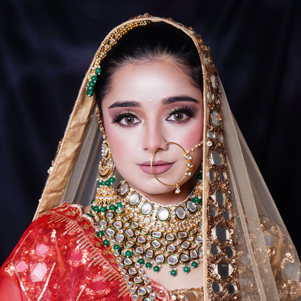 Experience the magic of your wedding day with our expert Bridal Wedding Makeup services. With a keen eye for detail and a passion for perfection, our makeup services will transform you into the bride of your dreams. The goal of bridal makeup is to enhance the bride's natural beauty, create a flawless and long-lasting look, and ensure that the bride looks her best on her special day.